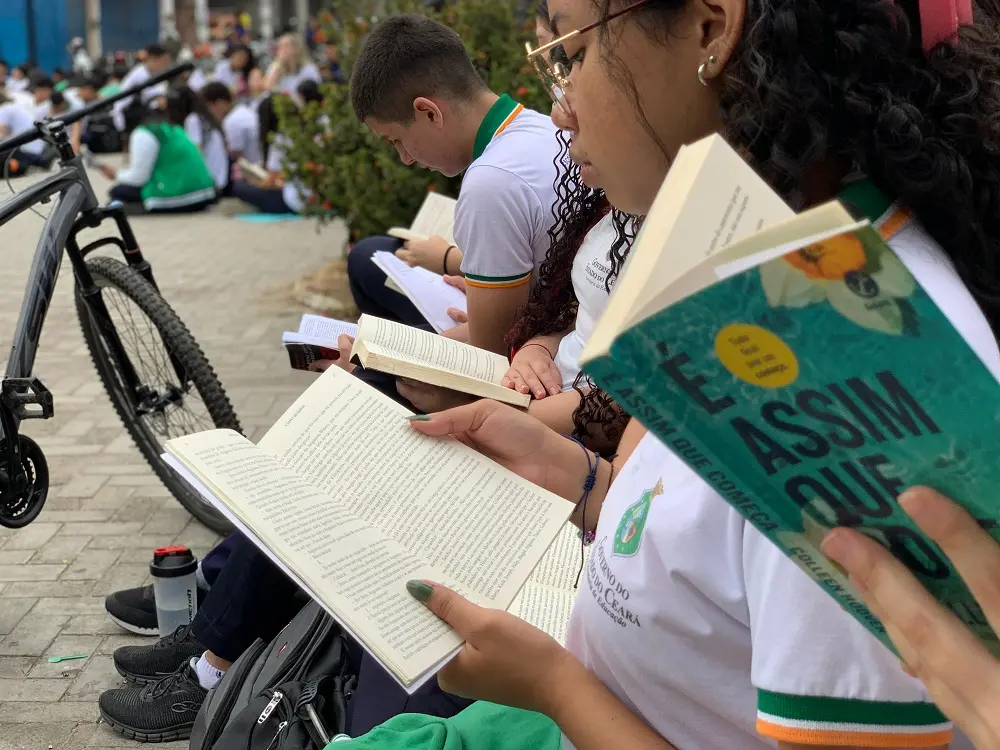 Em dia de incentivo à leitura, estudantes ocupam praça pública com livros no interior do Ceará