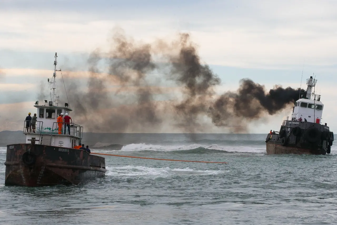A estrutura depende da maré alta para ser removida do local onde está há 12 dias