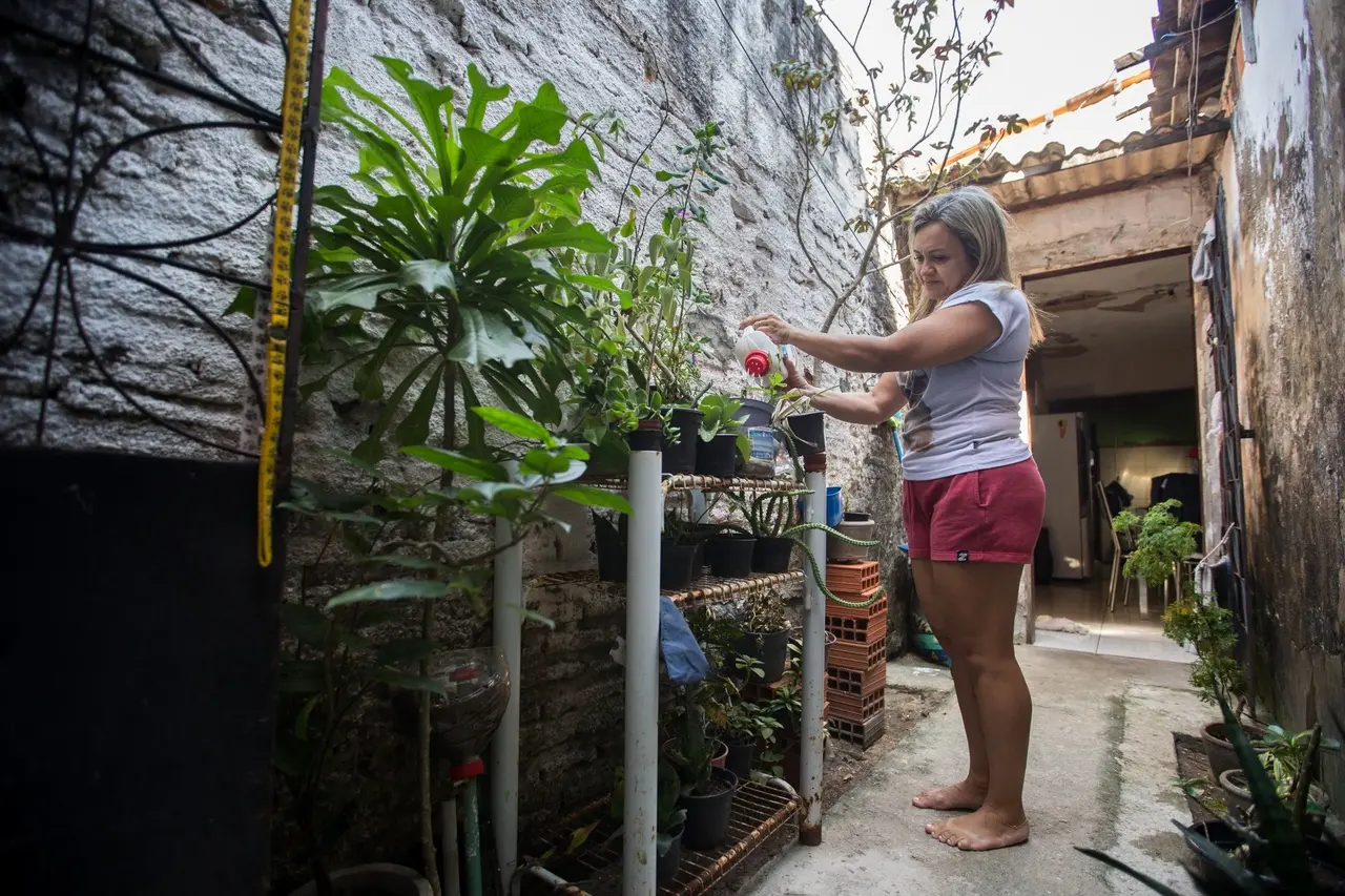 “Quando tá muito quente mesmo, de agosto pra lá, tem ninguém que aguente. Eu preciso me refugiar no banheiro”, brinca a moradora, que confessa já ter pensado em comprar um ar-condicionado para amenizar o problema. Enquanto isso, mantém as plantas do jardim interno regadas e bem cuidadas, além de adornar as janelas com jarros vistosos.