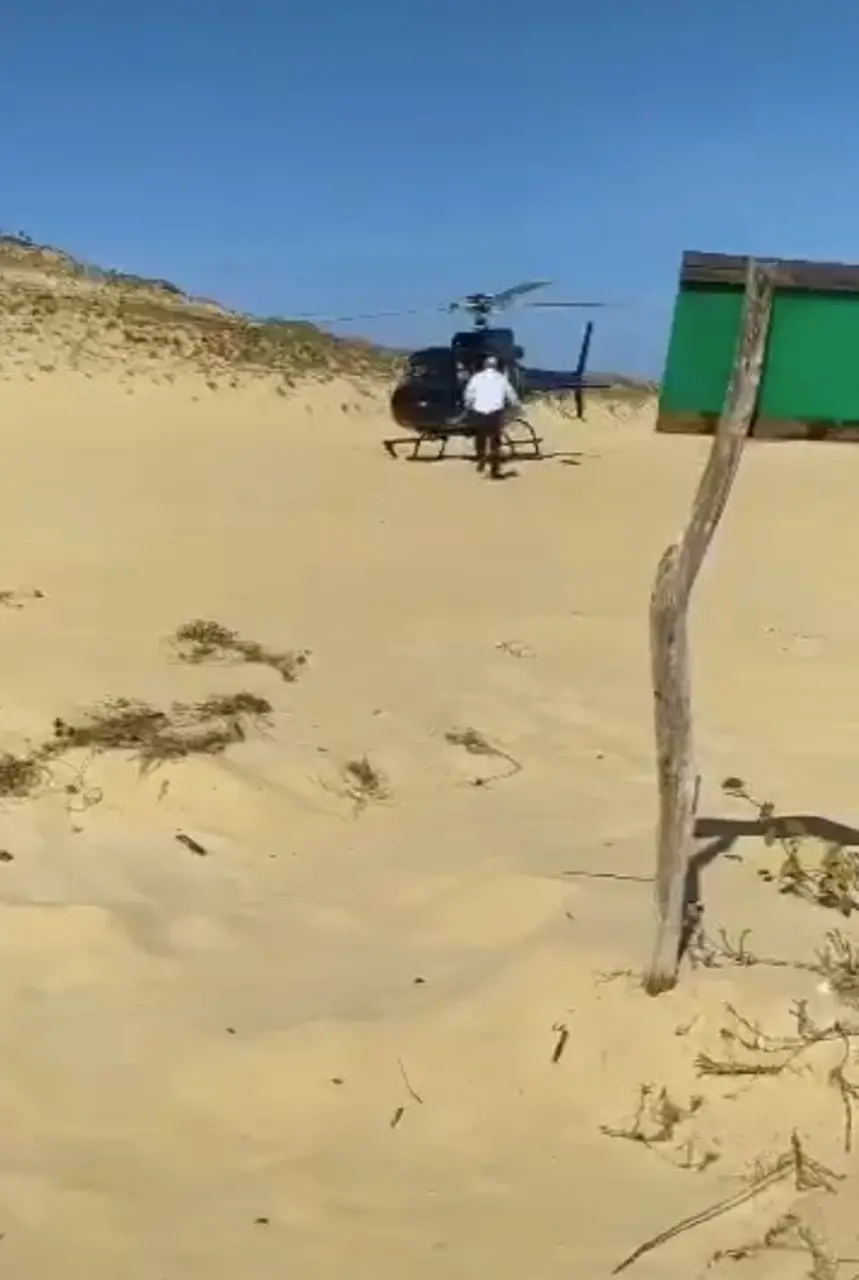 Empresário pousa helicóptero para comprar piaba frita em barraca de praia do Ceará; assista ao vídeo