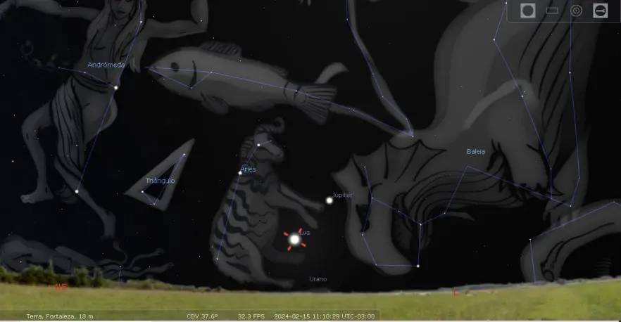 Além disso, a Lua também vai estar próxima de Júpiter. Ambos os corpos celestes estarão na constelação de Áries e serão vistos sem uso de nenhum equipamento, mas o uso de binóculos pode oferecer uma experiência ainda mais interessante.