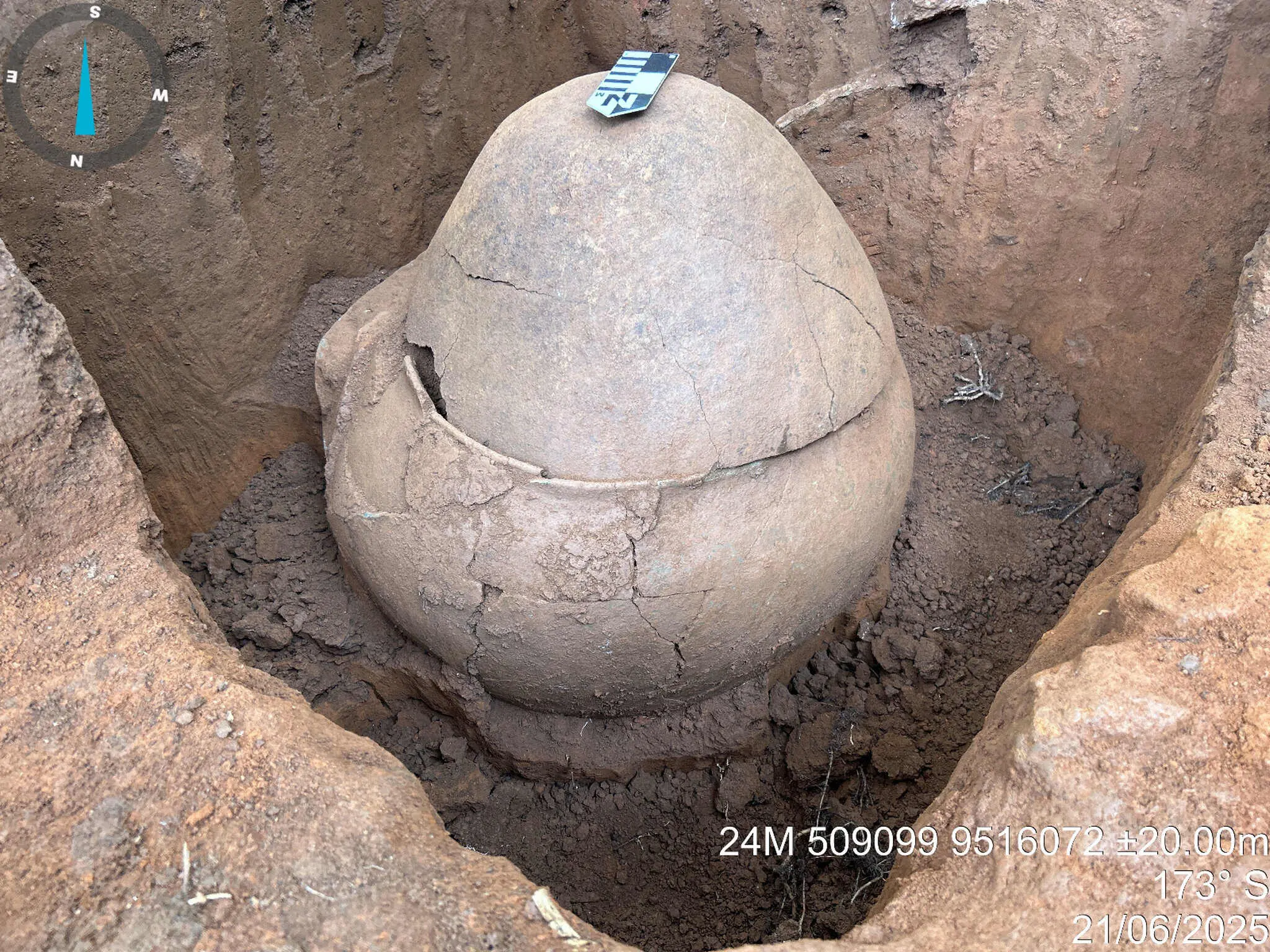 As escavações tiveram início em março de 2025 e devem seguir, pelo menos, até agosto. Vinícius detalha que ainda é necessário fazer recoleta de materiais existentes na superfície — como cerâmicas dispersas no perímetro de uso da comunidade — e escavações de vasilhas enterradas, além de levantamentos topográficos e outras atividades.