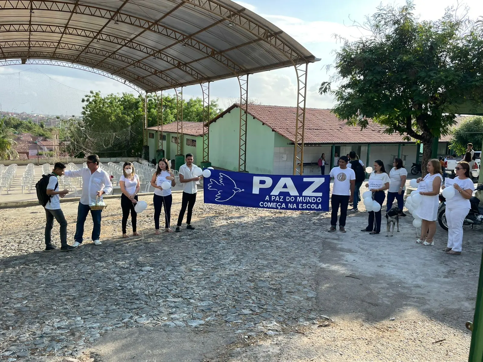 Os estudantes foram recebidos por educadores vestidos com camisas e balões brancos. Na recepção também havia um cartaz com a mensagem: "A paz no mundo começa na escola". Todos os alunos ganhavam um "abraço grátis" no momento da acolhida ainda no portão da escola, que ganhou o reforço de agentes da Polícia Militar.