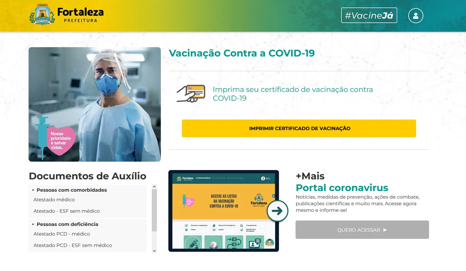 Os fortalezenses têm outra opção para acessar o certificado de vacinação contra a Covid-19. É possível gerar o documento no Vacine Já, plataforma da Prefeitura de Fortaleza.
