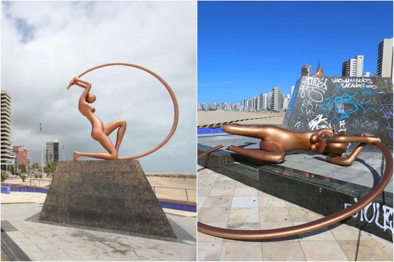 A escultura que é um ícone de Fortaleza caiu da base em maio de 2022 e teve que passar por reparos na estrutura