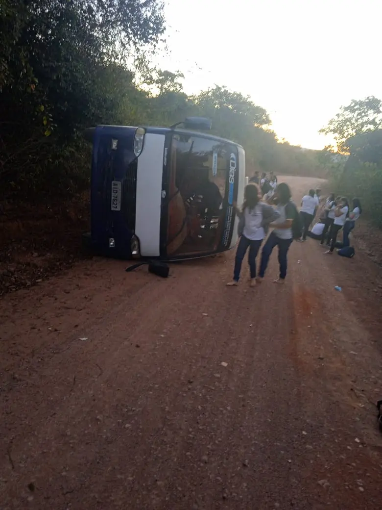 Estudantes se envolvem em acidente após ônibus tombar em Santana do Cariri, no Interior do Ceará