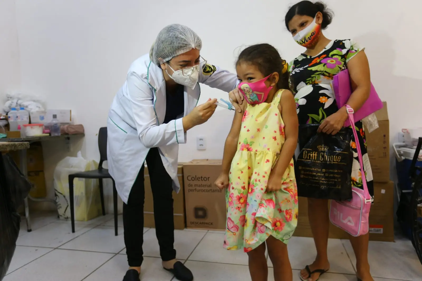 Crianças a partir de 3 anos já podem ser imunizadas contra a Covid-19 em Fortaleza. A aplicação começou, nesta segunda-feira (18), sem a necessidade de agendamento prévio, na modalidade de livre demanda.