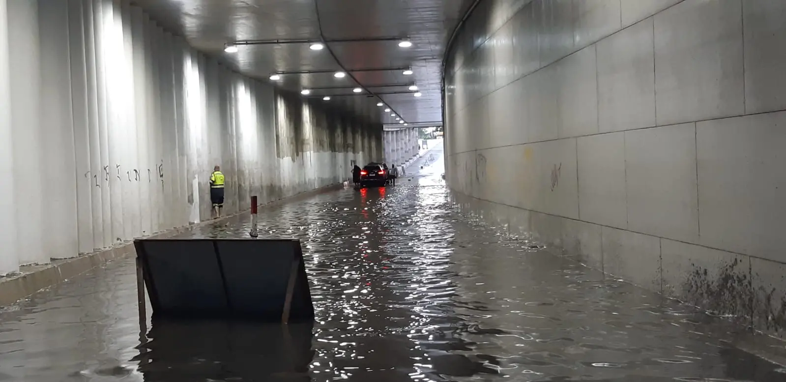 O acúmulo de água no túnel da Avenida Alberto Sá fez o tráfego de veículos ser interrompido temporariamente.