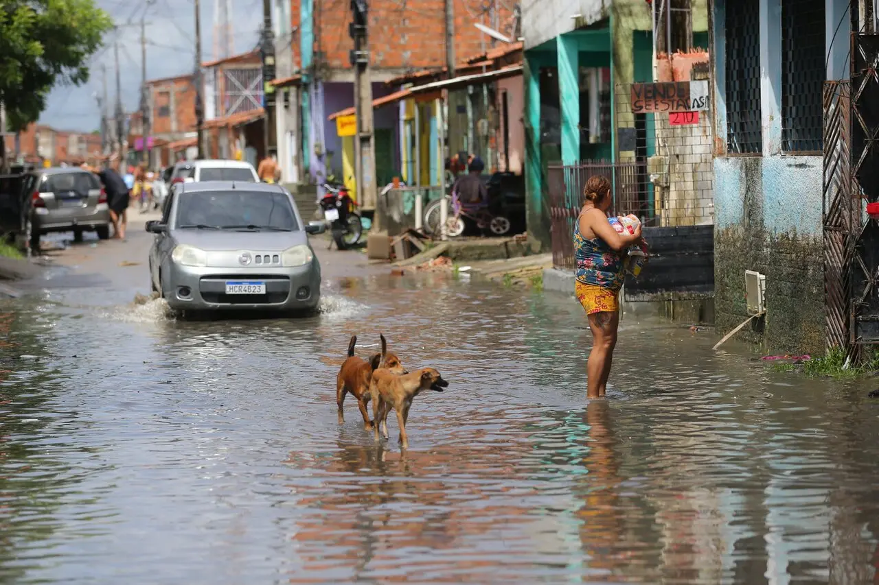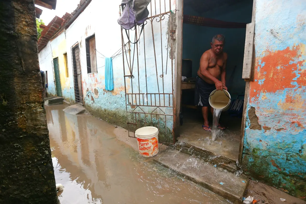 As gotas fortes no telhado foram o despertador dos moradores de Caucaia, município na Região Metropolitana de Fortaleza, que levantaram nas primeiras horas desta segunda-feira (13) com a água avançando casa a dentro. Com o nascer do sol, até crianças e idosos precisaram reunir esforços para lidar com os prejuízos.