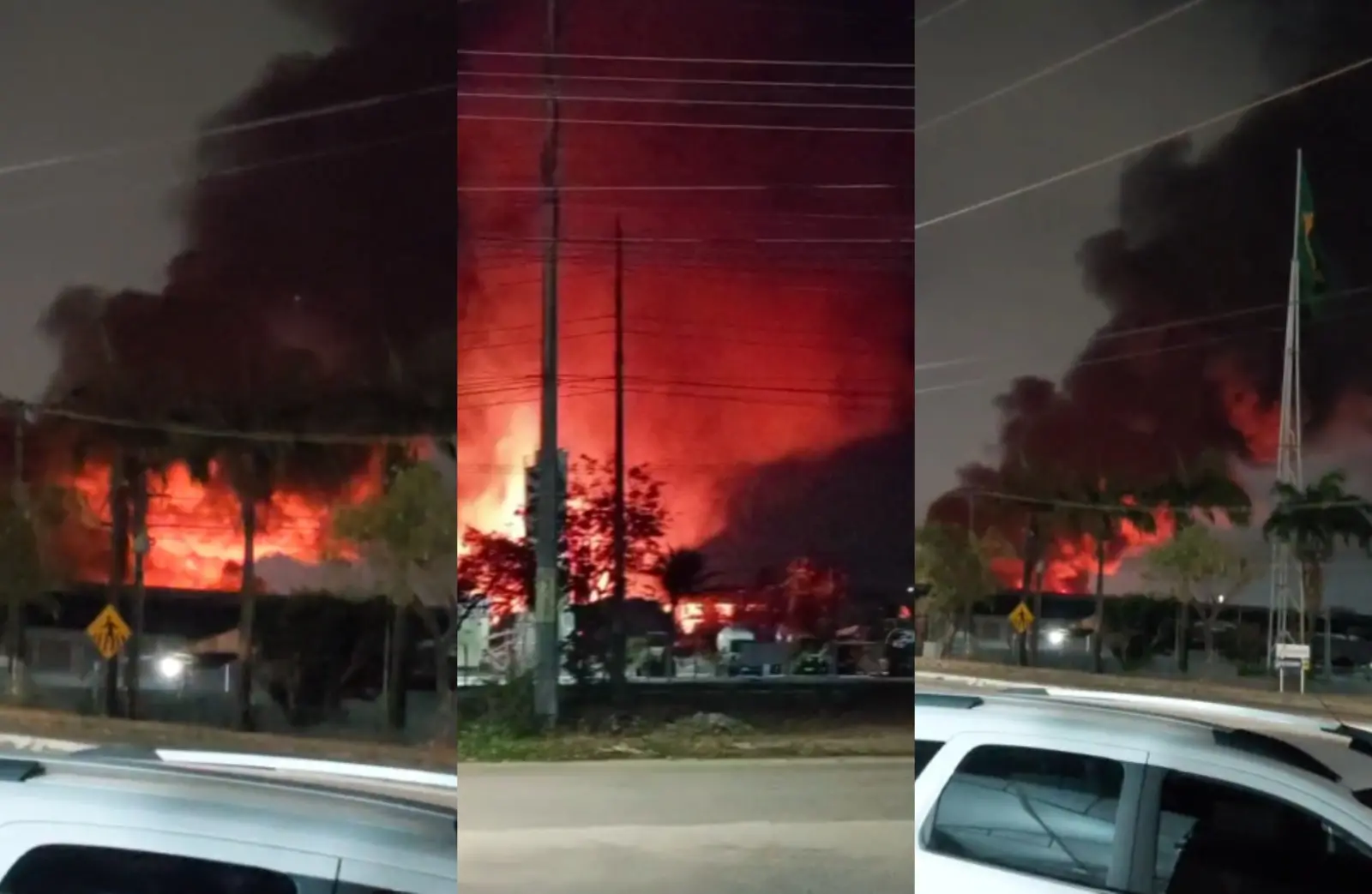 Um galpão foi completamente destruído após pegar fogo na madrugada deste sábado (24). O caso ocorreu no bairro Pajuçara, em Maracanaú, na Região Metropolitana de Fortaleza. No local, funciona uma fábrica de colchões, segundo informações do Corpo de Bombeiros.