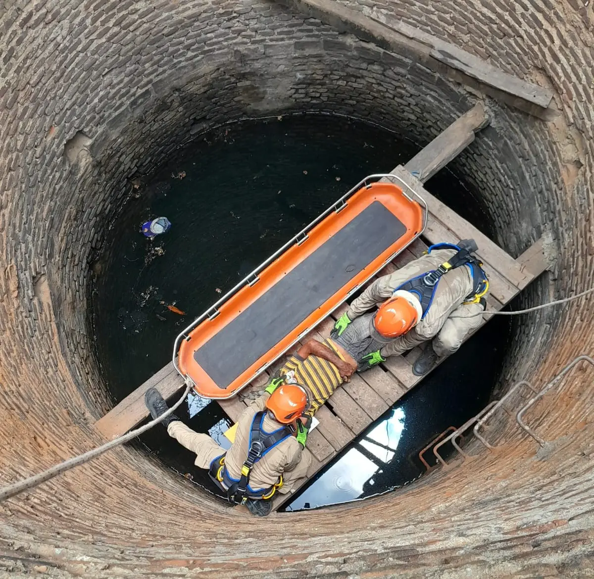 Moradores da região acionaram os bombeiros, que foram até o local. O homem foi retirado da cacimba por um sistema de descina controlada via rapel, com cabos e um cinco paraquedista.