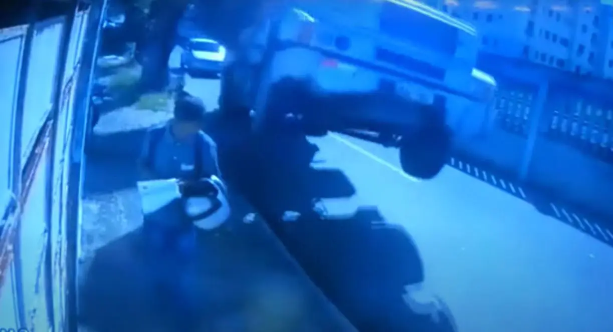 Homem é atingido de raspão por caminhão desgovernado e escapa de acidente em Maracanaú; veja vídeo