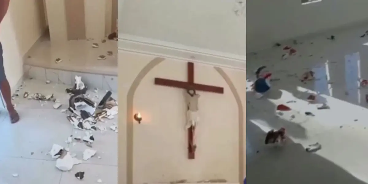 Imagens do local mostram diversas esculturas sacras e outros materiais do local quebrados. O caso ocorreu por volta de 16h30, em uma Igreja localizada na rua Santa Luzia.