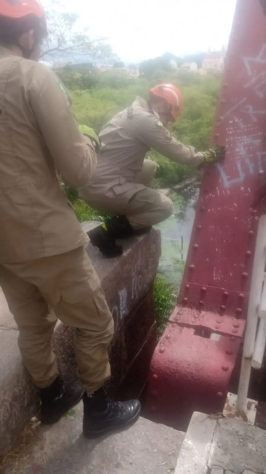 Idoso com sinais de embriaguez cai de ponte, fica preso e é resgatado por bombeiros no Ceará