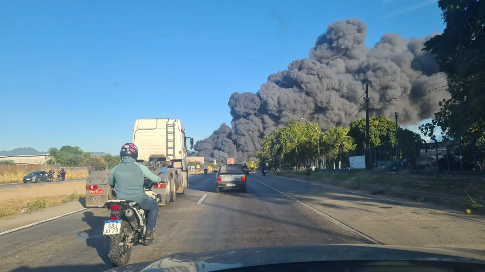 "Essa fumaça que vem dos colchões, é fruto de produtos derivados do petróleo. Essa fumaça pode causar tontura, náusea e asfixia. A pessoa vai ter dificuldade de respirar, se tiver contato. Se respirar por muito tempo, pode ter problemas respiratórios. E recomendável quem sair de casa, mesmo que esteja em Fortaleza, é interessante ver em aplicativos os pontos de congestionamento desse trecho para evitar respirar essa fumaça", explicou o militar do Corpo de Bombeiros.