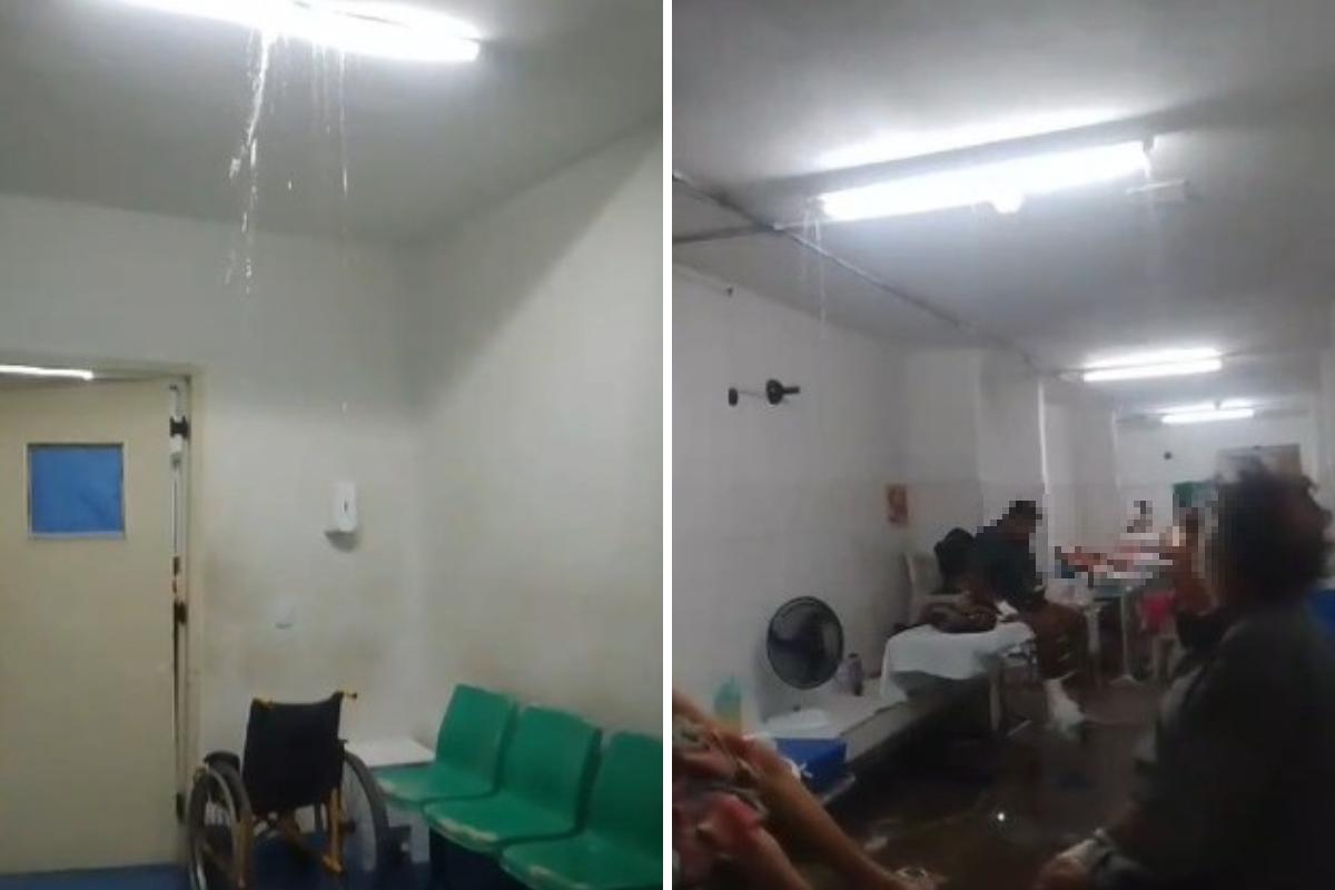Infiltração durante chuvas causa goteiras e alagamentos em área com pacientes no Frotinha do Antônio Bezerra