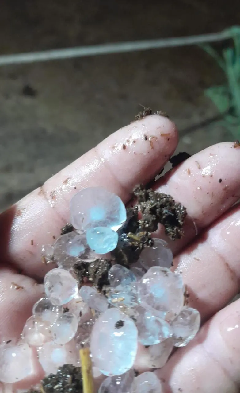 O profissional relata que apesar da precipitação com gelo e vento ter sido intensa, durou pouco tempo e não causou danos.