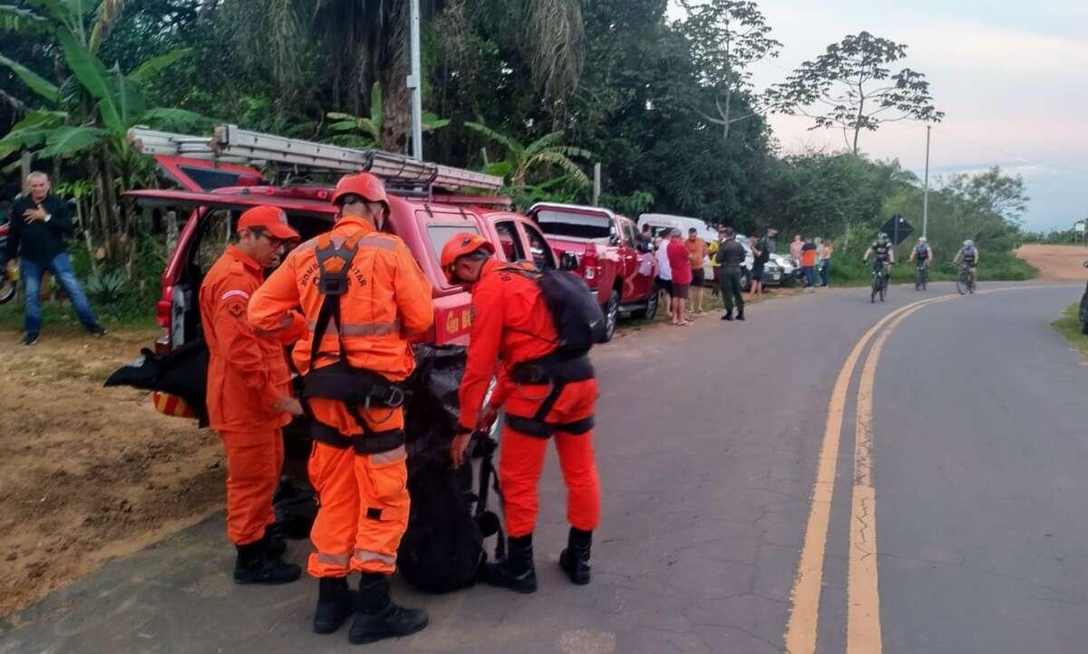Devido à dificuldade de acesso ao local, os bombeiros tiveram que seguir por uma trilha de 2 quilômetros até onde a vítima estava.