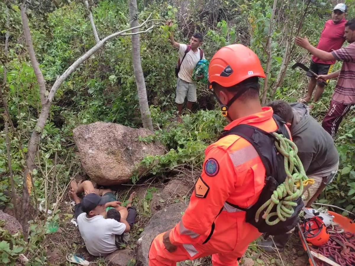 Jovem é resgatado por Corpo de Bombeiros após queda de 150 metros em serra de Massapê, no Ceará