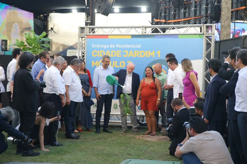 Em visita ao Ceará, nesta quinta-feira (20), o presidente Lula (PT) entregou, ao lado do governador Elmano de Freitas (PT), 416 apartamentos aos novos moradores do residencial Cidade Jardim 1, no bairro José Walter, na periferia de Fortaleza. Com a chegada desses residentes que, segundo o Governo do Ceará, são cerca de 1.600 pessoas, a entrega das unidades do módulo 3 foi concluída. Na ocasião, Lula e representantes do Governo destacaram o fato de a entrega estar ocorrendo em atraso, já que, segundo eles, o residencial deveria ter sido concluído em 2018, ainda na gestão de Jair Bolsonaro.