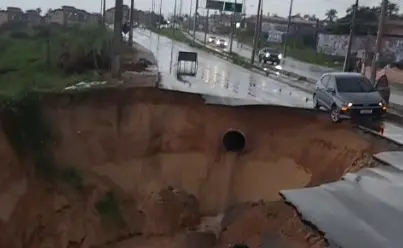 "Eu estava indo para o trabalho, era por volta de 5 horas, estava chovendo muito e tudo escuro. Quando vi a cratera freei com tudo e joguei o carro para o lado. Tentei dar a ré, mas o carro não ia e percebi que ele ficou caindo de lado. Puxei o freio de mão e consegui sair", disse.