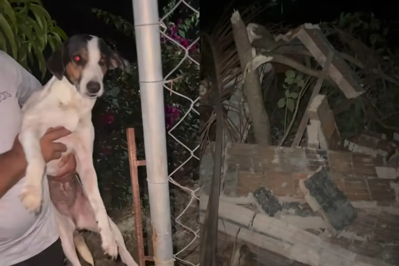 Uma das cadelas no abrigo chegou a se ferir com a queda do muro. No Instagram, a direção da entidade publicou imagens do ocorrido e pediu ajuda financeira dos seguidores para realizar uma reforma.