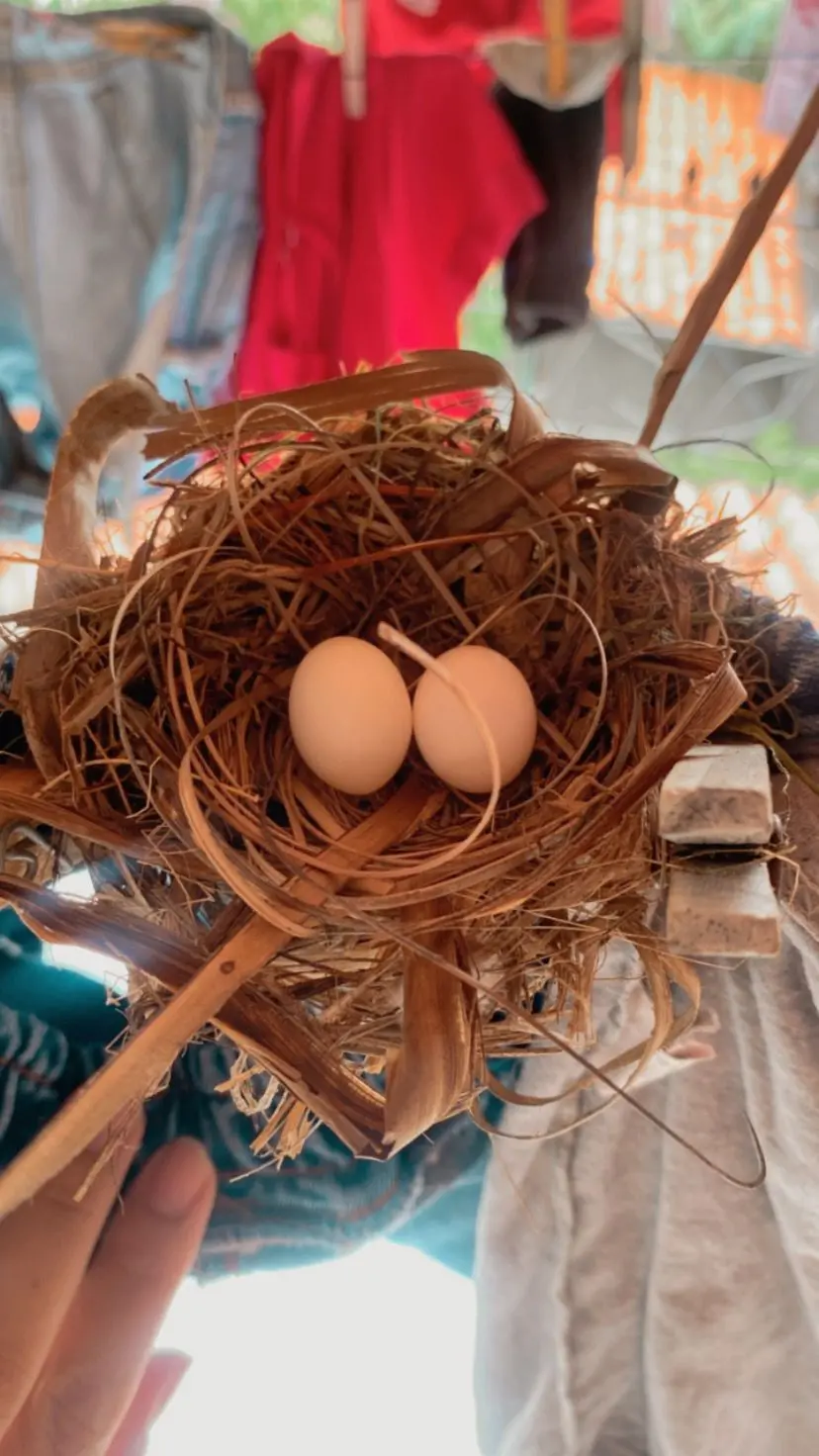 "Coloquei as roupas no varal no domingo e fui retirar ontem, daí quando cheguei ele estava o ninho e um passarinho em cima da roupa do meu filho de 4 anos", contou Gleyce Félix em entrevista ao Diário do Nordeste, ainda surpresa com a novidade em casa.