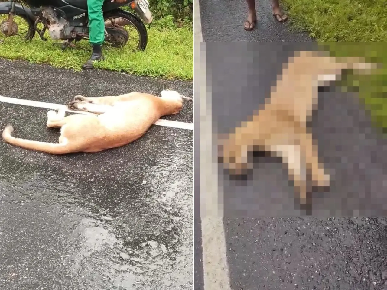 Uma onça-parda — também conhecida como suçuarana — foi encontrada morta em uma estrada de Morrinhos, no Interior do Ceará, na última quinta-feira (15). Em vídeos recebidos pela reportagem, é possível ver o animal já sem vida às margens de uma via do município que fica no Litoral Norte do Estado.