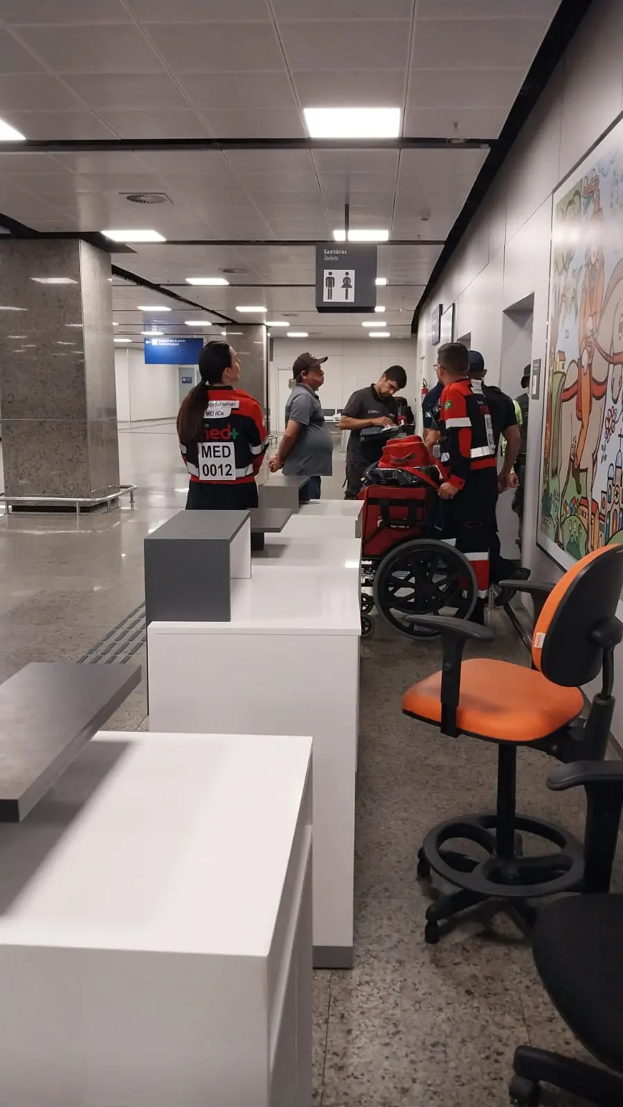 Imagens que circulam nas redes sociais mostram a movimentação da equipe médica do Aeroporto Internacional de Fortaleza no recinto.