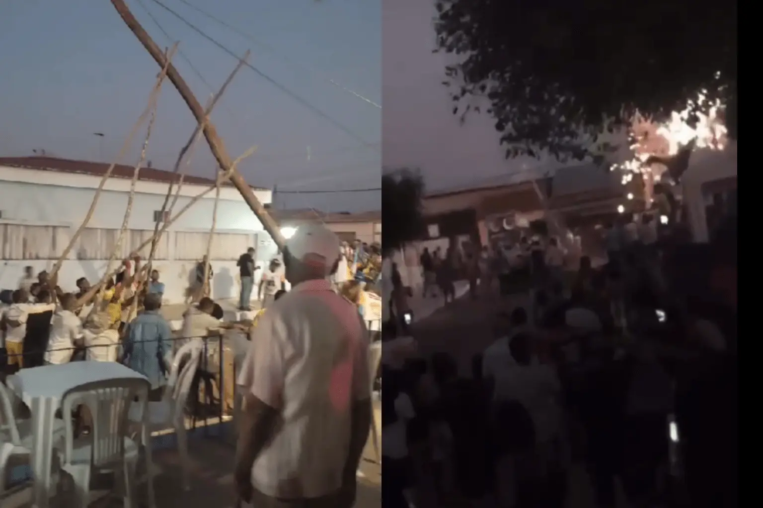 Os fiéis que acompanhavam o hasteamento do Pau da Bandeira nos festejos do padroeiro São Vicente de Paula, em Barbalha (CE), foram surpreendidos pelo tombamento do tronco. O fato aconteceu no domingo (17). Apesar do susto, ninguém ficou ferido. Parte da fiação de energia elétrica do município e um carro de som foram atingidos.