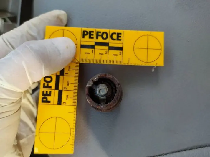 O laudo da Pefoce diz que "após minuciosa análise constatou-se que o objeto retirado do corpo da vítima trata-se de um fragmento do dispositivo de acionamento (insuflador) do sistema para inflar a bolsa do airbag, cuja referida peça fica localizada na região central da direção (volante)”. A peça tinham aproximadamente 23mm de diâmetro e 22mm de comprimento.
