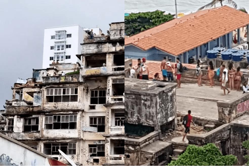 Moradores da região e turistas registraram em vídeos o grupo de pessoas, formado principalmente por jovens e adolescentes, no topo do edifício e em outros andares. O Corpo de Bombeiros disse não ter sido acionado para nenhuma ocorrência no local.