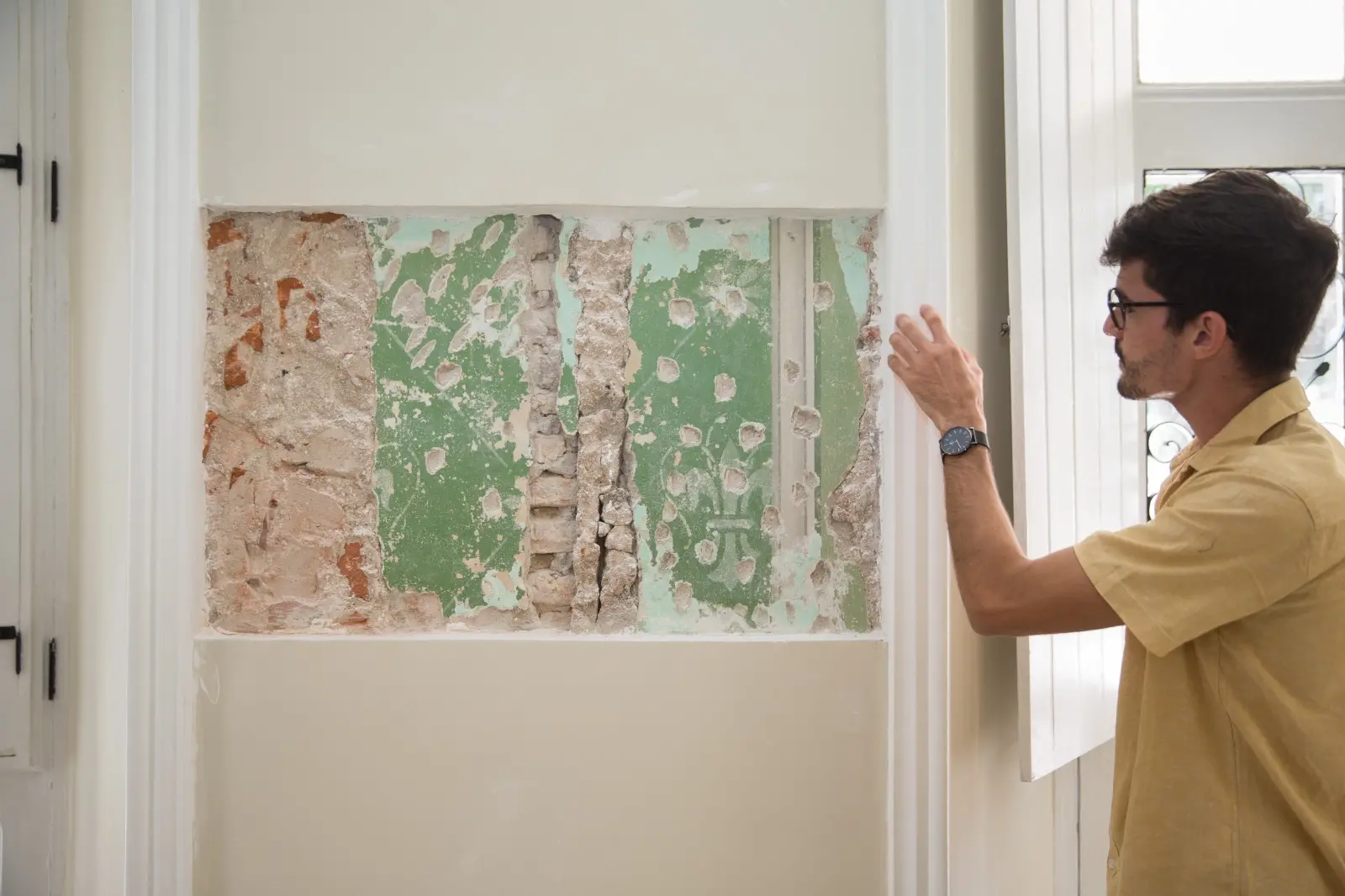 Foi quando a equipe começou a raspar as camadas de parede (um processo chamado de janelas prospecção) até encontrar o desenho de uma flor de lis. O Diário do Nordeste visitou o espaço onde o cheiro de tinta e a poeira fina são parte dos preparativos para o resgate histórico.