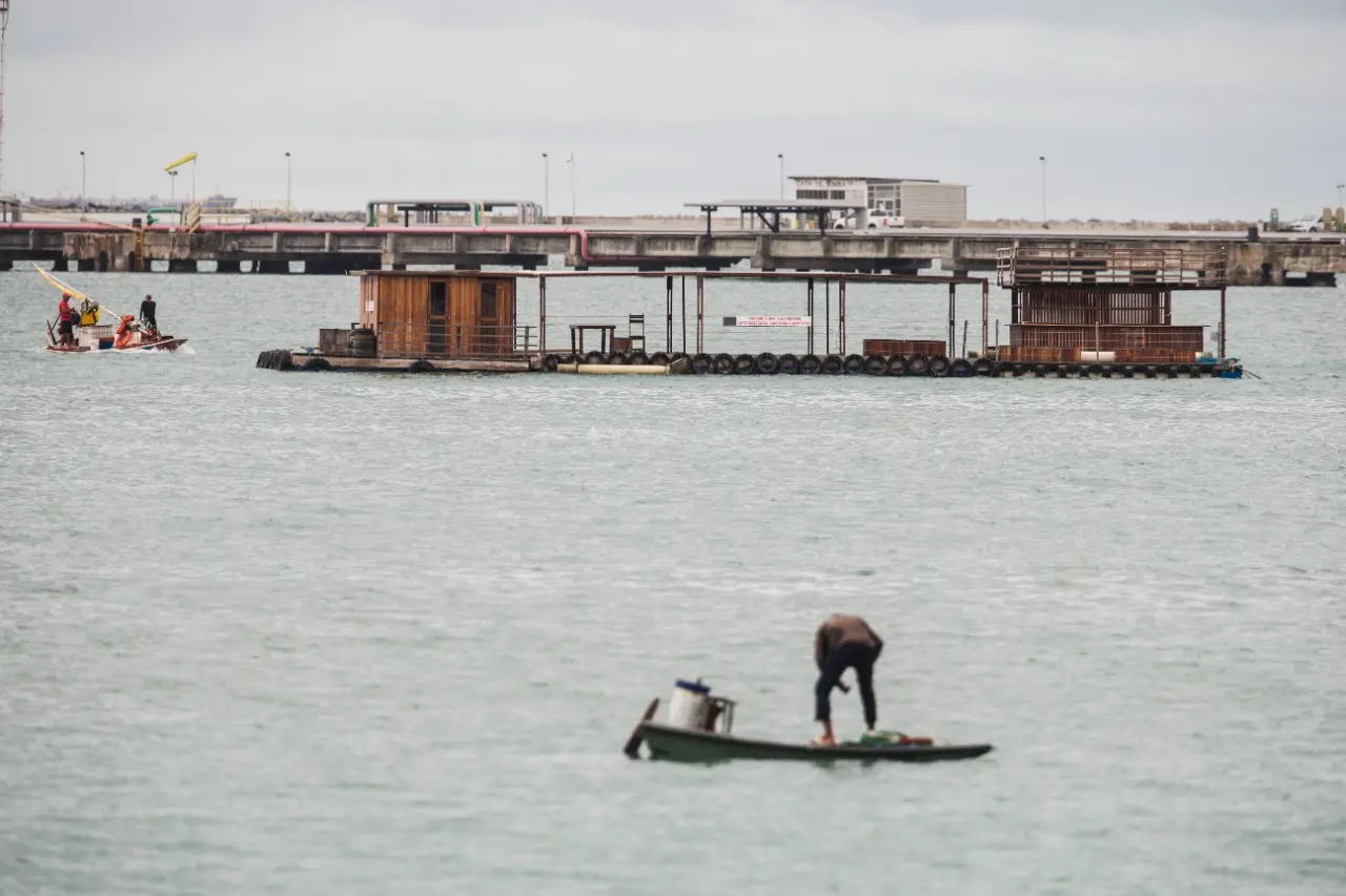 Plataforma flutuante é construída no mar do Mucuripe e aguarda regularização da Marinha para uso