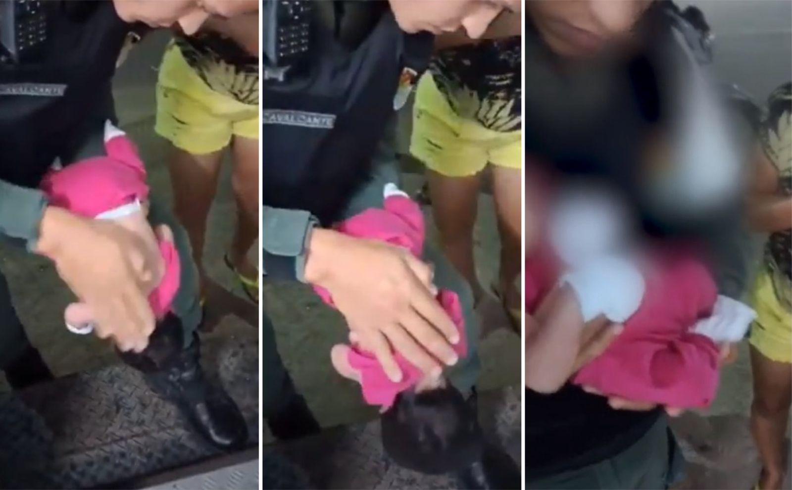 Policiais militares salvaram uma recém-nascida, de apenas uma semana de idade, após ela se engasgar com leite materno. O caso aconteceu no bairro Jangurussu, em Fortaleza, na noite da última sexta-feira (29).