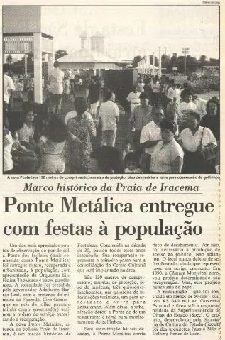 A Ponte dos Ingleses ficou 60 anos sem manutenção e, por representar risco de desabamento, teve o acesso proibido na década de 1990, como registram reportagens da época analisadas pelo Núcleo de Pesquisa do Diário do Nordeste.