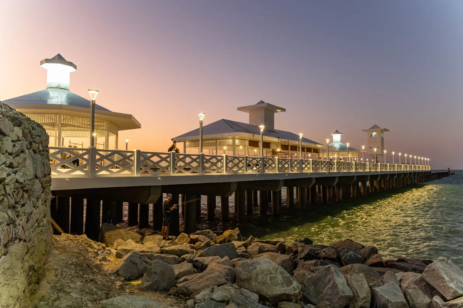 A obra contempla a reconstrução dos quatro quiosques, o pavilhão central, a torre de observação e o conhecido tablado do pôr do sol. Contudo, o novo piso e o guarda-corpo foram feitos em concreto para evitar danos causados pela maré.