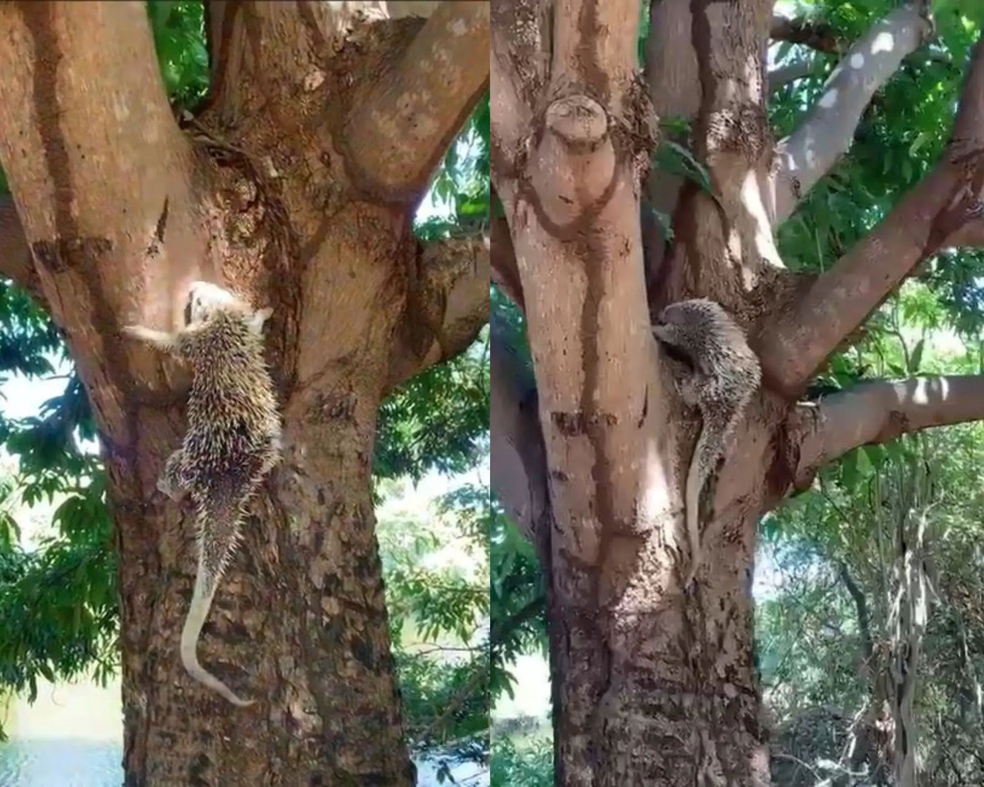 Um "quandu de baturité" - mais conhecido como porco-espinho - foi resgatado por equipes do Corpo de Bombeiros do Ceará (CBMCE), na manhã da última segunda-feira (24). O animal estava em cima de uma árvore de uma residência, no município de Tauá, no Ceará.