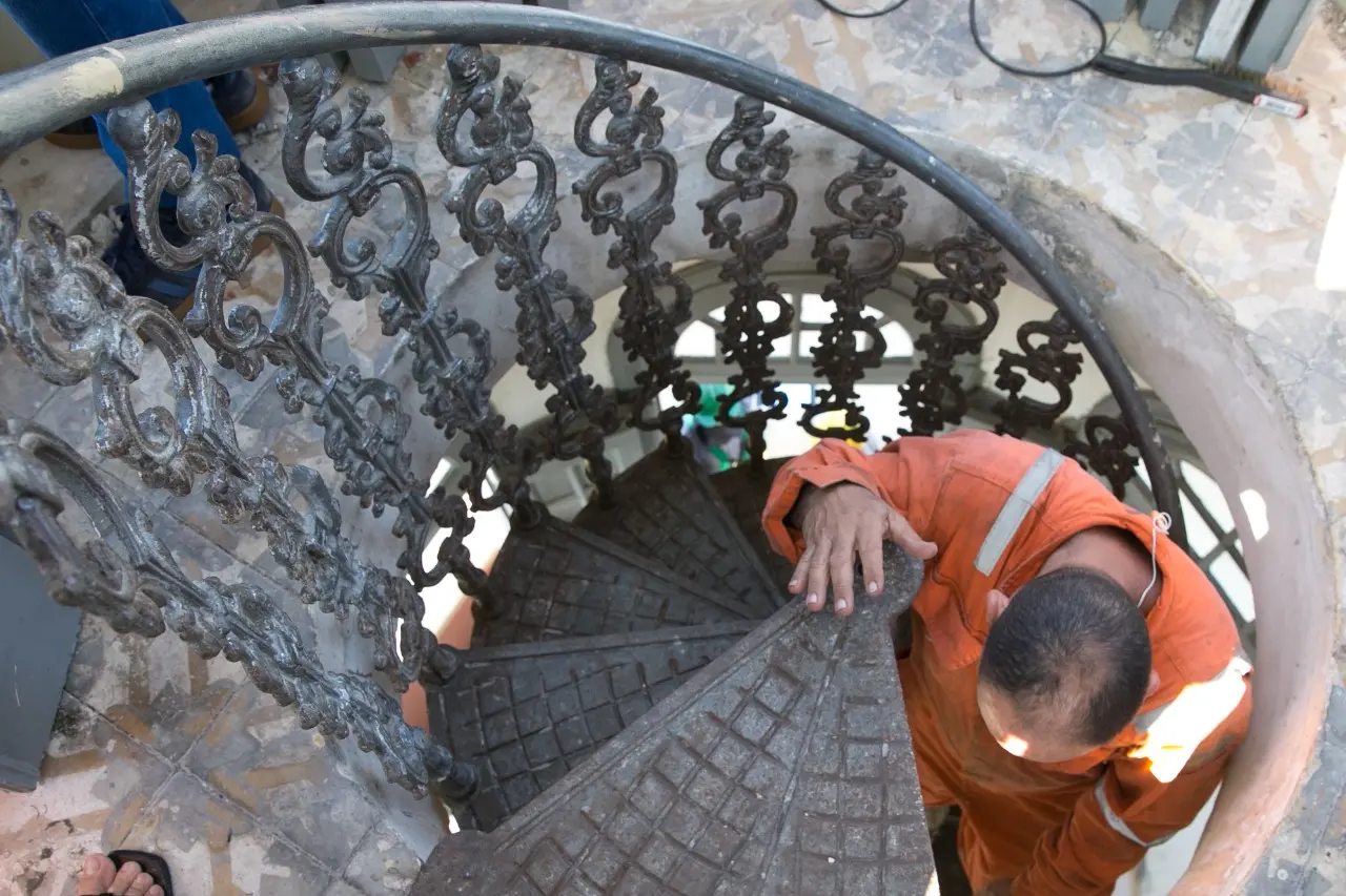 As peças de arte, inclusive, ganham um cuidado especial. “Nós fizemos um mapa de danos, que identificou o estado de conservação do chão até o ponto mais alto da torrinha, incluindo as escadas de ferro e madeira e os vidros que estavam parcialmente danificados”, explica.