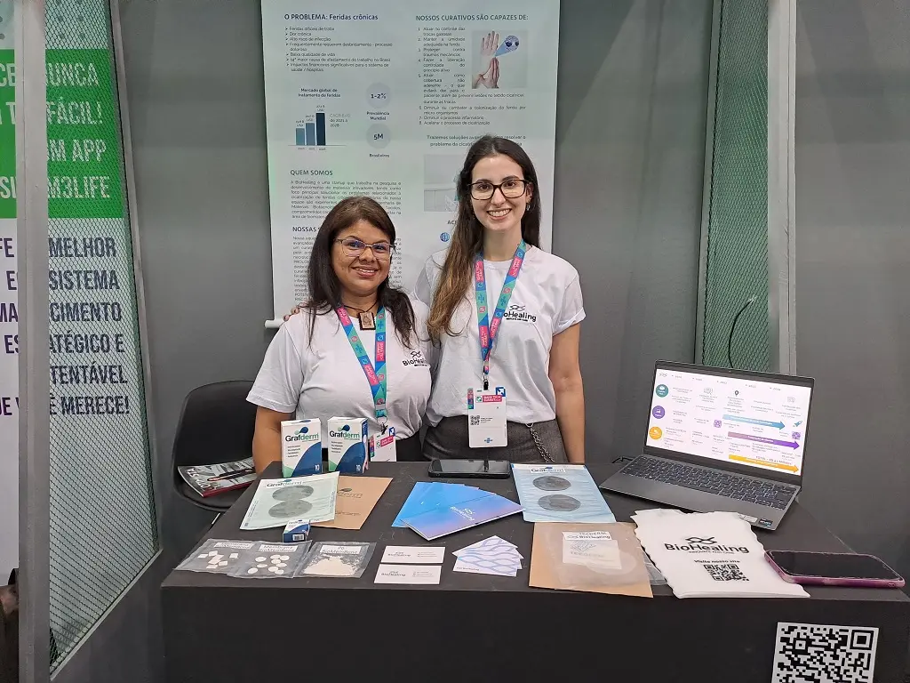 Representando as inovações no ramo da saúde, a engenheira química Pamela Bortoluzzi e a bioquímica Jacilane Ximenes marcaram presença pela startup BioHealing, focada na aplicação de biomateriais. A empresa tem curativos de regeneração, com o diferencial de que eles oferecem ações antimicrobianas, de regeneração celular e de proliferação óssea.