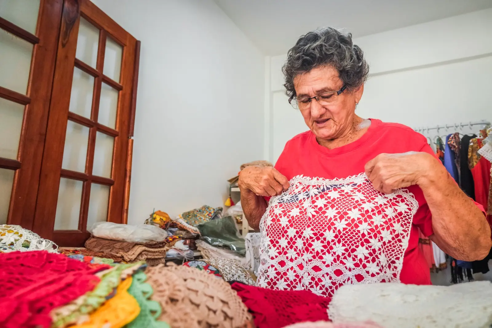 “Não tive infância de brincar de boneca. Quando chegava em casa da escola, a almofada já tava preparada. Depois de um tempo, comecei a namorar e casei. Fiz minha casa e criei meus filhos, tudo com a renda. Tenho muito orgulho”, brilha os olhos.