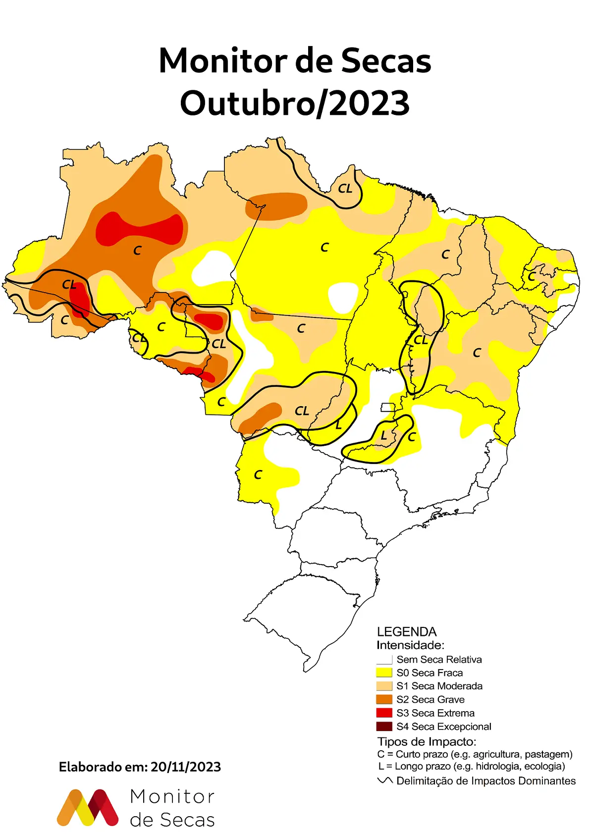 Até o momento, o Monitor indica que o cenário teve impactos a curto prazo (últimos 3, 4 e 6 meses), principalmente sobre atividades de agricultura e pastagem.