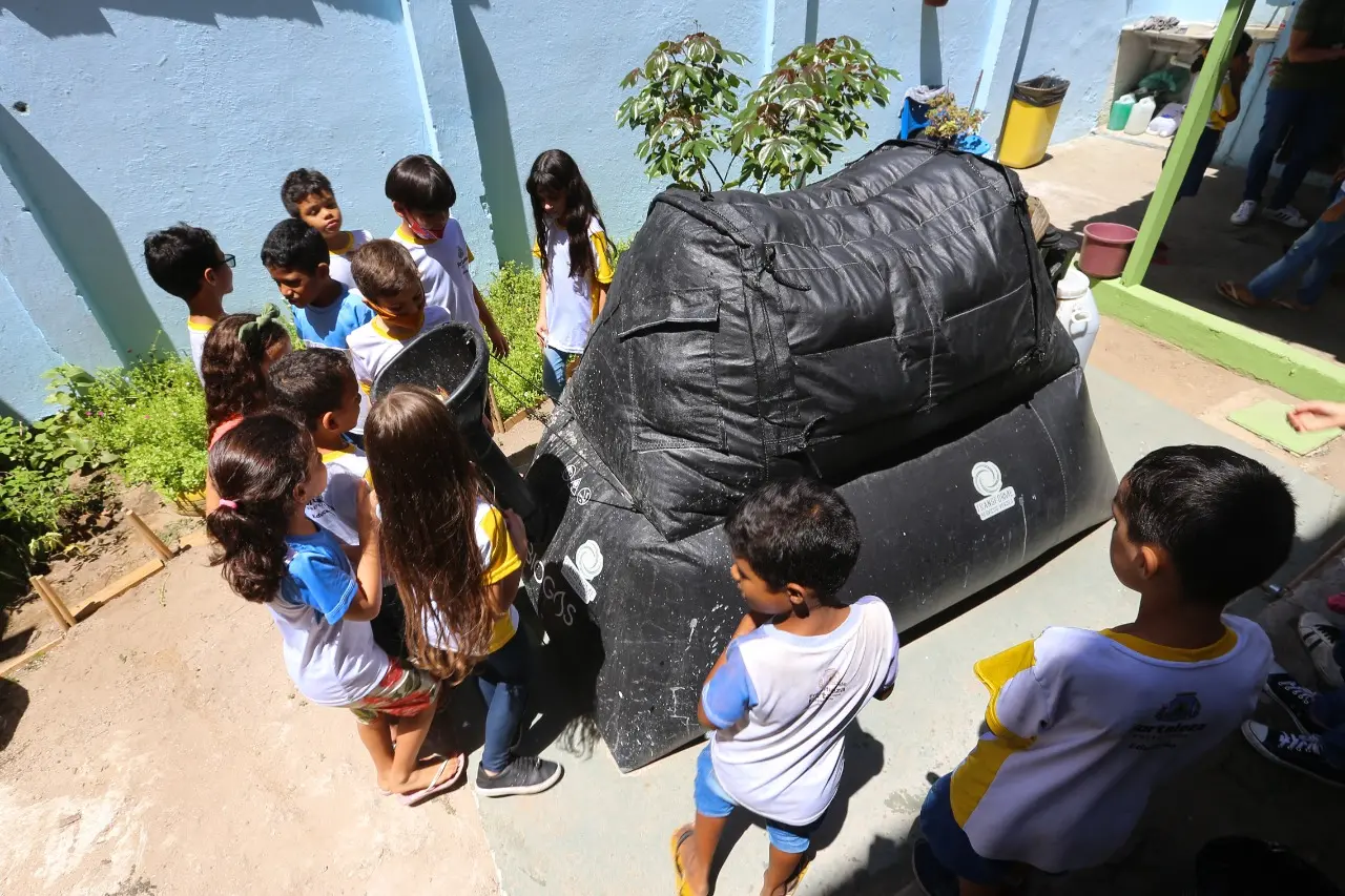 Sobras da merenda escolar viram gás e fertilizante com uso de biodigestores em Fortaleza