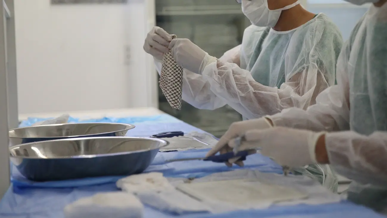 Após receberem o insumo, os pesquisadores realizam um processo de tratamento para que a pele se torne apta à aplicação nos ferimentos e queimaduras.
