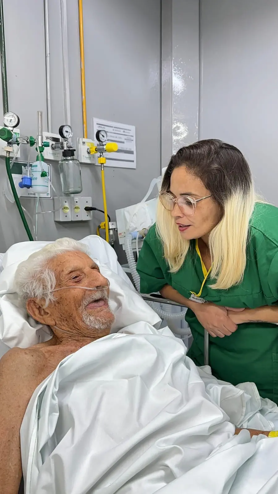 Técnica de enfermagem cuida, brinca, dança e faz amizade com paciente de 109 anos em UPA de Fortaleza; veja vídeo