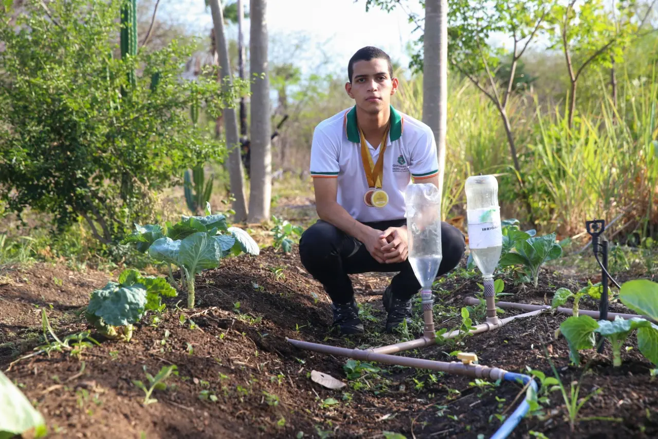 Aluno do CE cria sistema de irrigação com garrafas, muda trabalho no campo e ganha prêmio científico
