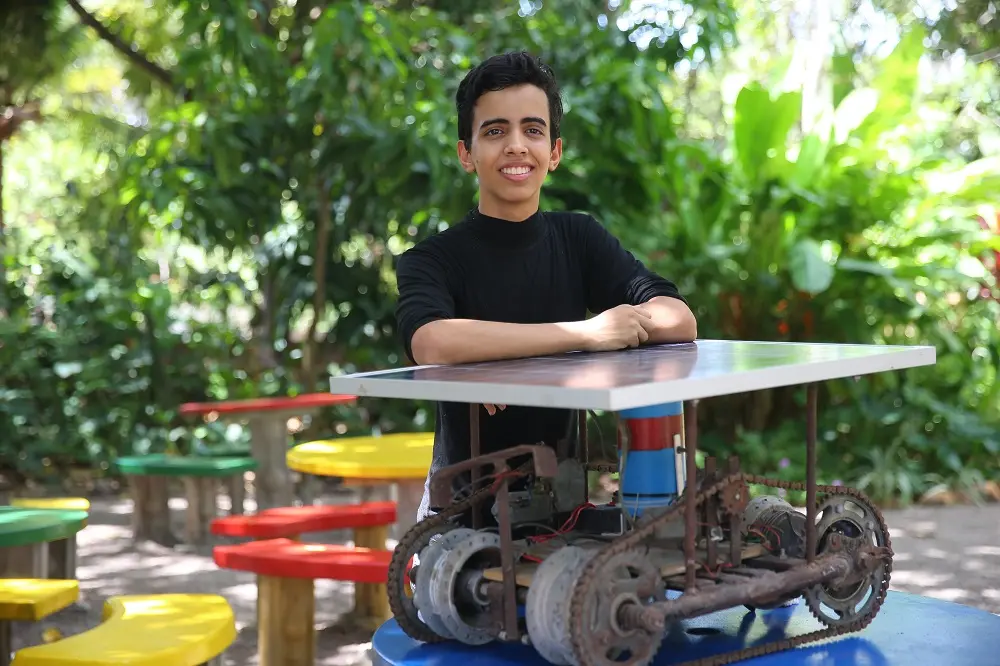 Com visão empreendedora e voltada para resolução de problemas, o estudante Ud Madeiro Pereira, de 18 anos, encontrou uma solução de baixo custo para auxiliar pequenos agricultores. Utilizando materiais recicláveis e energia solar, ele criou um robô semeador, projeto vencedor nacional da sétima edição do Prêmio Respostas para o Amanhã, em 2020.