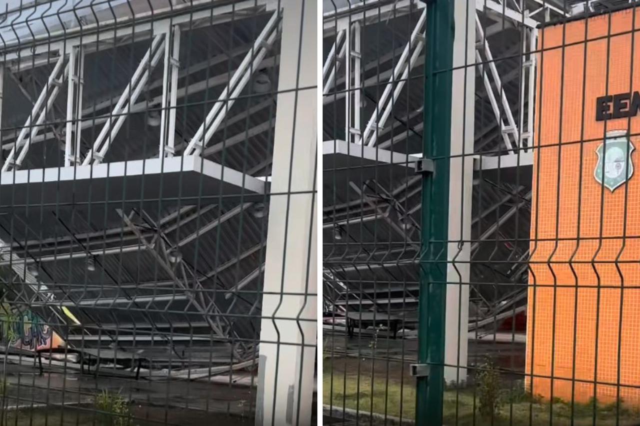 A estrutura da cobertura do teto que fica na entrada da Escola de Ensino Médio em Tempo Integral (EEMTI) Estado de Alagoas, na Barra do Ceará, em Fortaleza, desabou na manhã desta segunda-feira (18). A queda ocorreu por volta das 5h40, antes das atividades da instituição começarem, e em meio à forte chuva que caiu na Capital.