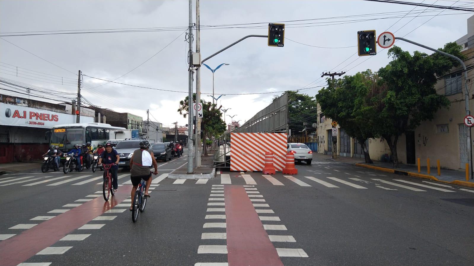 A Autarquia Municipal de Trânsito e Cidadania (AMC) bloqueou as faixas de tráfego situadas junto ao canteiro central do logradouro, em ambos os sentidos, no trecho entre as avenidas da Universidade e Aguanambi.