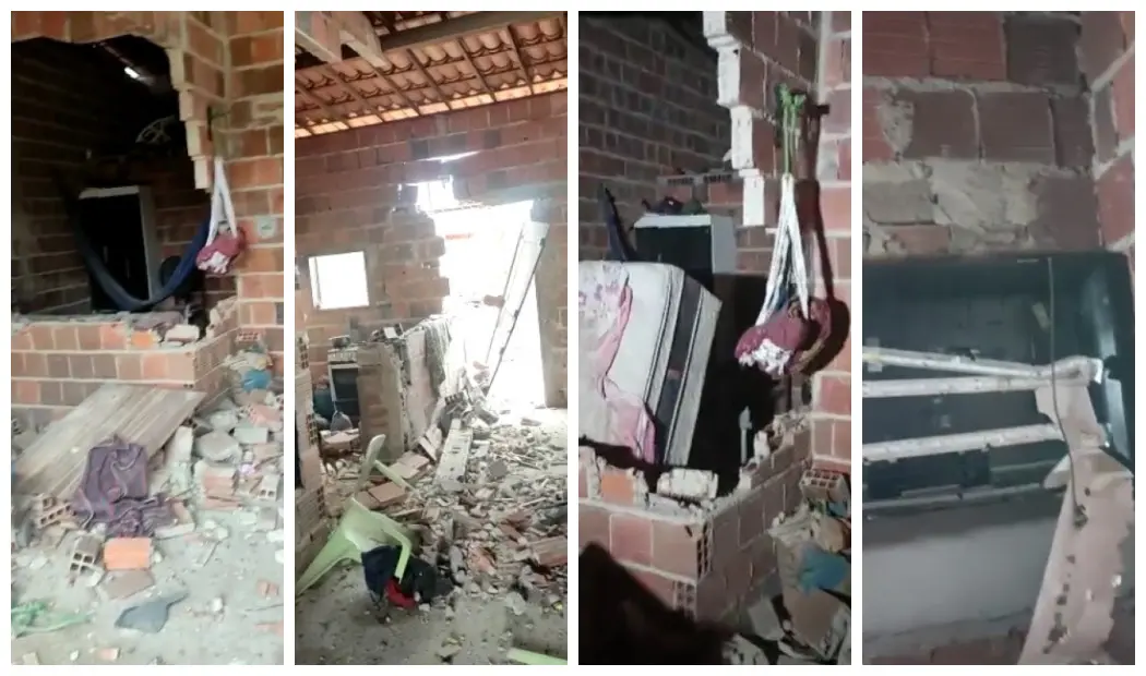 Imagens da casa onde a família estava mostram paredes e móveis destruídos pelo raio, que, segundo Benedita, pode ter atingido uma torre de internet próxima, resvalando no imóvel. "Queimou tudo, televisão, geladeira. As paredes caíram, portas, janelas, até pratos e copos quebraram. Foi um impacto muito grande", afirma.